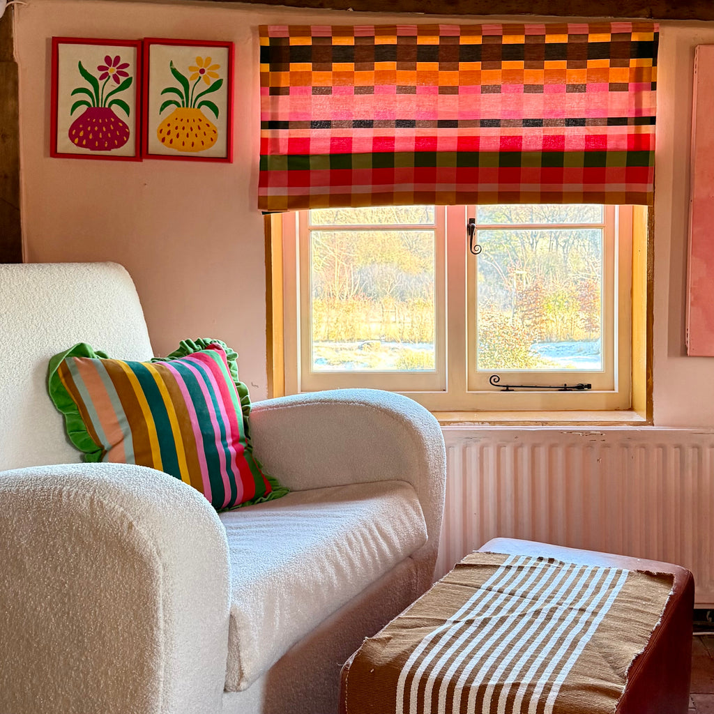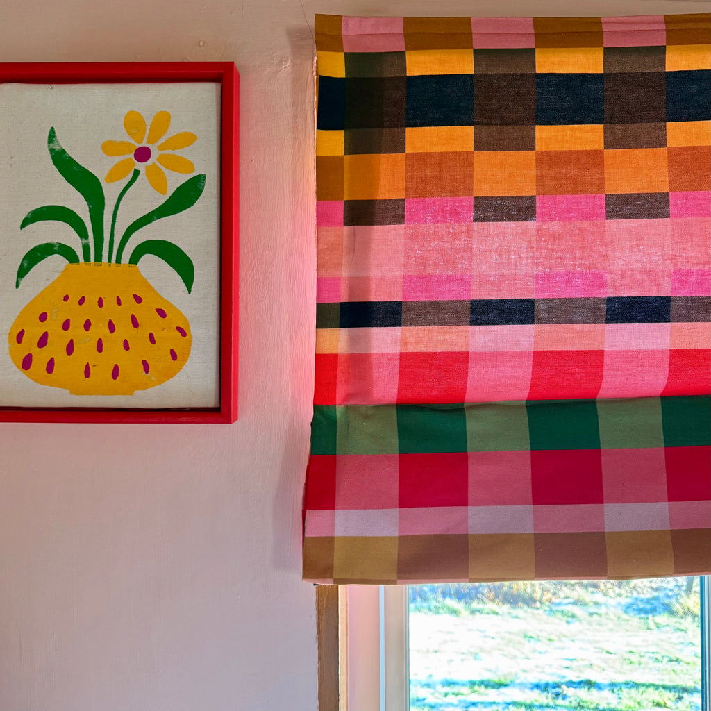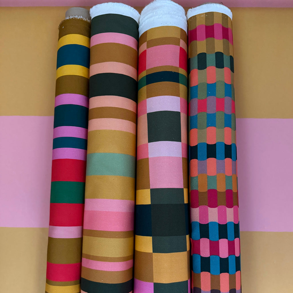 Design: Think Summer picnics and happy times. This check is bold, bright and eye grabbing. The colours are part of the Flowers for Mama collection and compliment the other fabrics within this range.